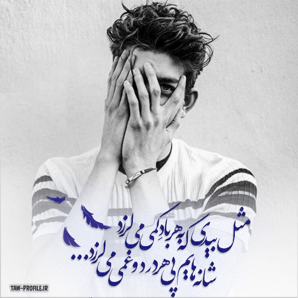 مثل بیدی که به هر باد کمی می لرزد شانه هایم پی هر درد و غمی می لرزد | کلمات کلیدی :شعر غمگین کپشن پایین سفید آبی